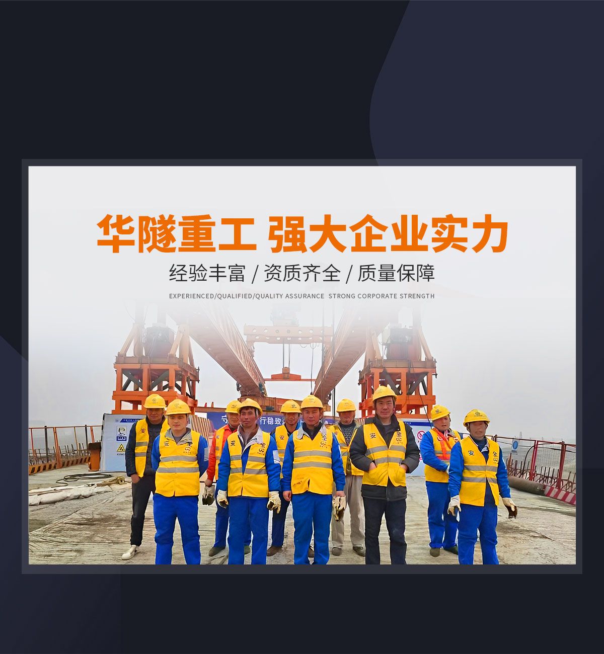 河南華隧重工機械裝備有限公司主要從事通用門式起重機、橋式起重機、電動單梁起重機,輪胎式起重機、架橋機、提梁機、遠梁平車、鋼絲繩電動萌蘆、卷揚機、起重配件制造、銷售:起重機械租賃、安裝和維修,起重設備園收,機械設備維修,鋼結構工程承包,橋梁工程及技術咨淘服務,銷售五金制品、機電設備:建設工程監理,建設工程設計,各類工程建設活動,建筑勞務分包,建筑物折除作業,施工作業,工程管理服務,土石方工程施工,裝如發運?! 」疽淹ㄟ^IS0國際質量、環境、健康與安全三合一標準認證,特種設備制造許可證和特種設備安裝改造維修許可證。擁有完熟的質量管理體系。嚴格的管理制度,強大的生產能力和先進的檢測手段,在保證產品質量的同時,也具備了極強的市場競爭力。  公司堅持科技創新為理念,產品質量為核心,注重信譽,建立了減信可靠、快捷、思速。便利周到的售后服務網絡?! ∥覀儞碛械募夹g專家和技術服務隊伍為客戶提供充善的售前技術支持和全天候的售后服務體系,讓您無后顧之憂,享受一站式的超值服務。  “華隧重工,伴您成功“是華隧重工永遠的宗指,真被的希望與各界朋友攜手并進。共創輝準!